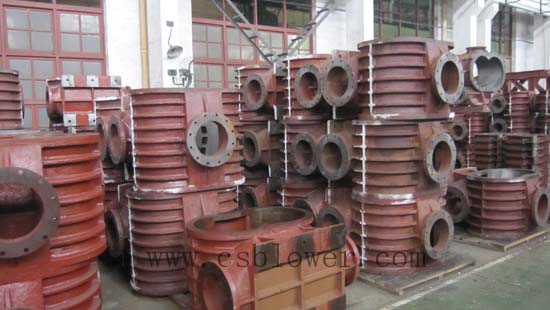 羅茨風(fēng)機機殼內(nèi)部裝有一對轉(zhuǎn)子部,轉(zhuǎn)子部是由葉輪和軸經(jīng)熱